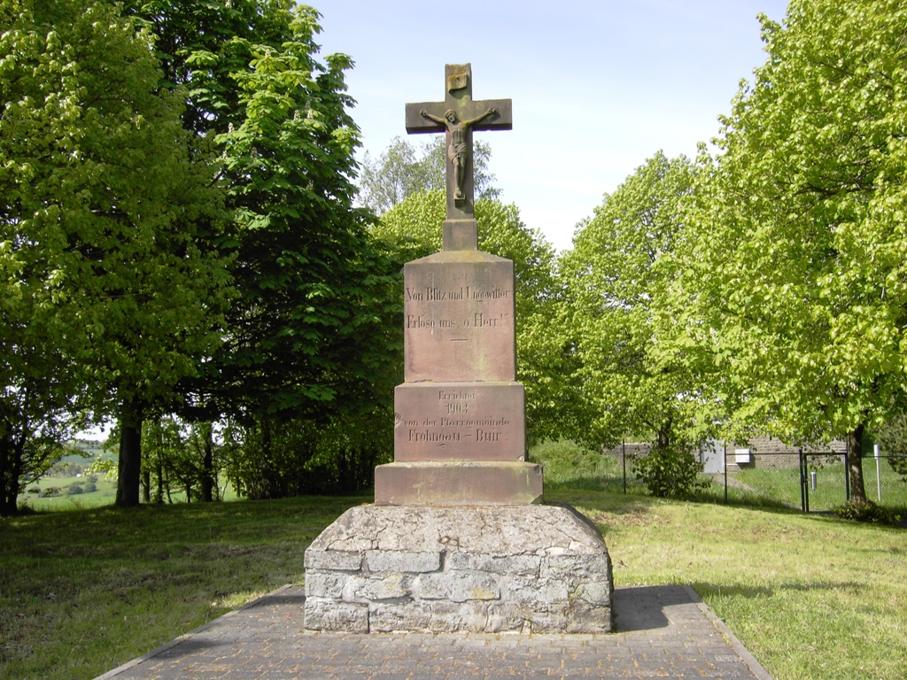 Am 11.August 1903 wird das alte Hagelkreuz bei Buir durch ein neues ersetzt. Es wurde durch freiwillige Beiträge aus der Pfarrgemeinde beschafft. Angefertigt wurde es durch den Bildhauer Zins, aus Kyllburg zum Preis von 130,00 Mark. Die Maurerarbeiten wurden von dem Maurermeister Fries zu Holzmülheim ausgeführt.Traditionell ziehen jährlich an Christi Himmelfahrt Bittprozessionen von Frohngau, Buir und Tondorf zum Hagelkreuz, um Gottes Segen für die Feldfrüchte zu erbitten.